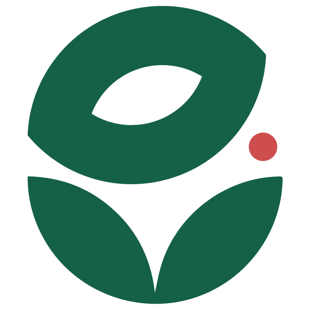 the company name. The red dot in the brand name represents the